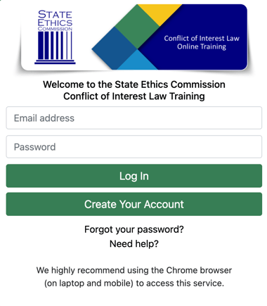 Please note this is an external site and you must Create Your Account if you have not done so already. Your ArxEd account credentials are not shared with the State Ethics Commission.